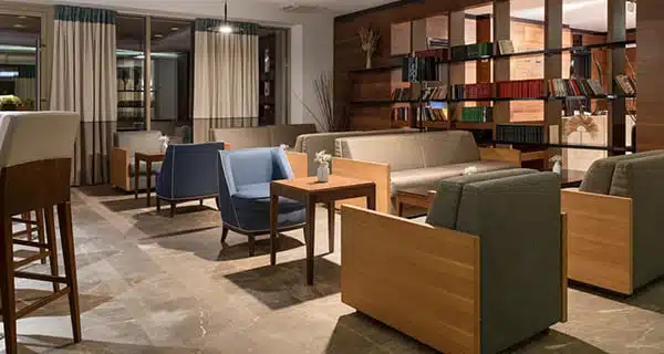 Элегантное пространство, где всегда можно провести время в приятной компании или просто насладиться спокойной атмосферой. Лобби-бар 5* открыт круглосуточно, предлагая гостям изысканные напитки, комфортную обстановку и идеальное место для неспешных бесед или отдыха после насыщенного дня.